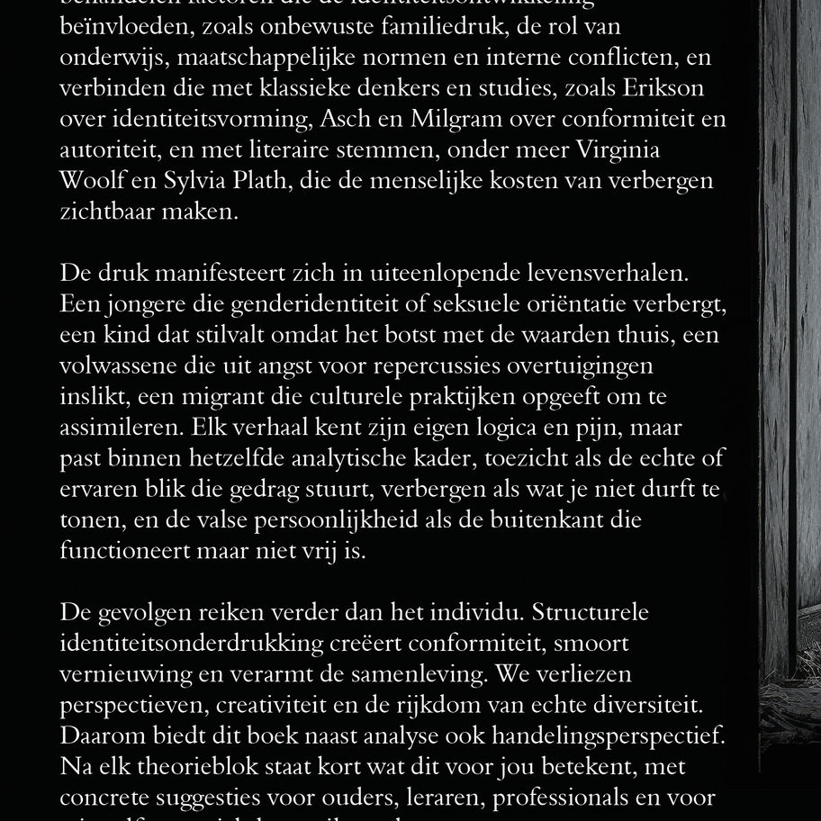 Naast analyse biedt het boek ook perspectief. Wat vraagt een veilige omgeving werkelijk? Hoe maken we ruimte voor zichtbaarheid zonder dat mensen hun bestaansrecht verliezen?